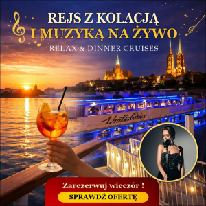 Zanurz się w niezapomnianą atmosferę Wrocławia podczas 3-godzinnego wydarzenia na pokładzie statku Wratislavia. Czeka na Ciebie 1- godzinny rejs po Odrze, podczas którego delektować się będziesz elegancką 4-daniową kolacją, powitalnym drinkiem i nastrojową muzyką na żywo.
